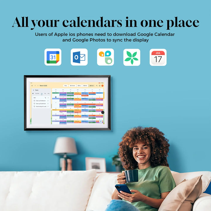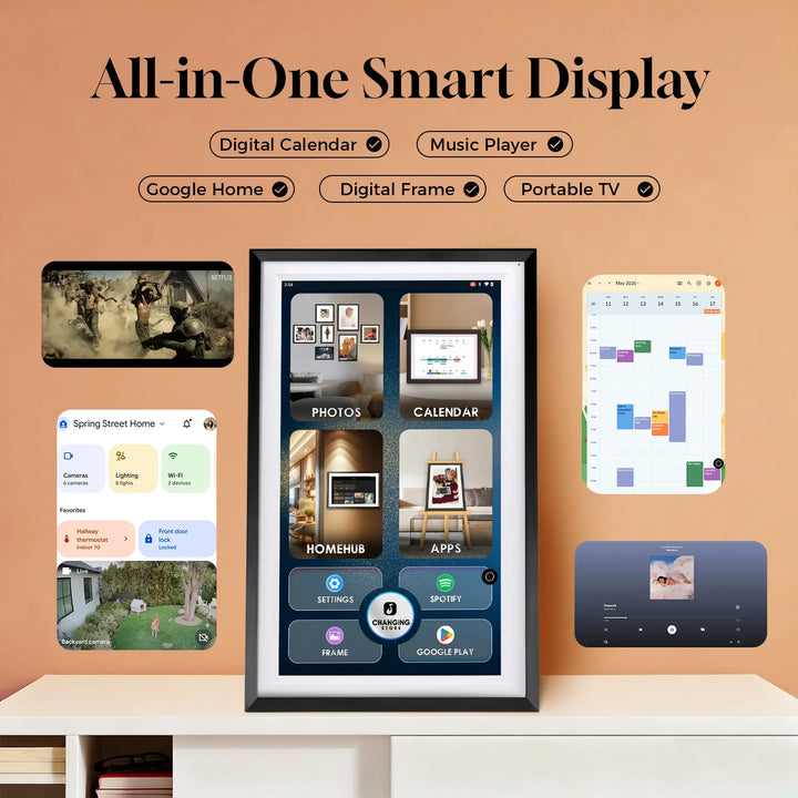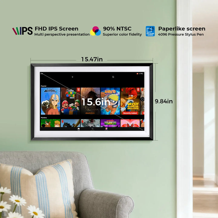 • All-in-one: 15.6" Smart Display for home organization with Google Calendar&HomeHub&Voice assistant|Digital Picture Frame with Anti-Glare touchscreen | Portable TV | Music Speaker | Like a large tablet